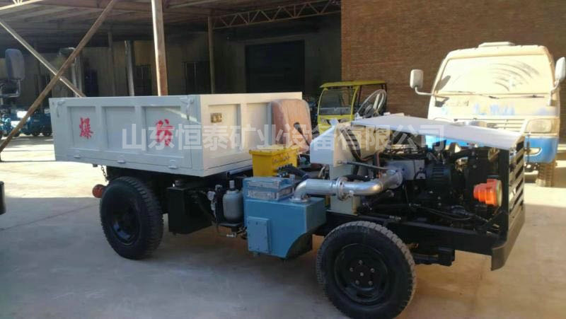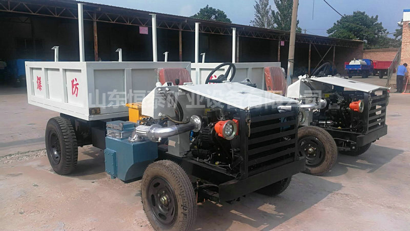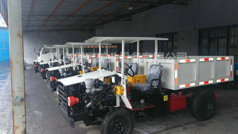 無軌膠輪車是一種以柴油機為動力、機械傳動、四輪驅(qū)動、前后機架中央鉸接、全液壓轉(zhuǎn)向的煤礦井下無軌膠輪運輸機械,主要用于巷道斷面不小于3.5×3m、坡度不大于25%的煤礦井下運輸作業(yè)。該車具有操作方便、轉(zhuǎn)彎半徑小、爬坡能力強、污染低等特點。 該車型有基本型和低矮型,低矮型適合薄煤層的運輸作業(yè)。另外,通過改變車架和車廂形式可以轉(zhuǎn)換成平板車、自卸車、人車等,其中自卸車又有后翻自卸和平推自卸兩種形式。 該車設(shè)計新穎、結(jié)構(gòu)合理、運行穩(wěn)定、經(jīng)濟實用、性價比高。