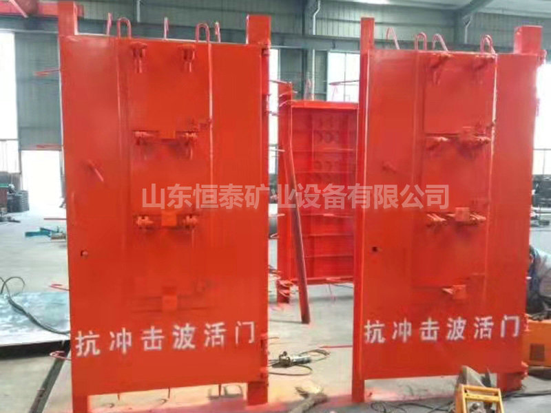 抗沖擊波門(mén)由抗沖擊波活門(mén)和抗沖擊波密閉門(mén)組成,用于井下材料庫(kù)和材料發(fā)放硐室,起隔離作用阻止沖擊波及產(chǎn)生的火焰、有毒氣體向外部巷道擴(kuò)散,由總回風(fēng)道排出??箾_擊波活門(mén)起抗沖擊波、調(diào)節(jié)庫(kù)房所需風(fēng)量和隔離作用。